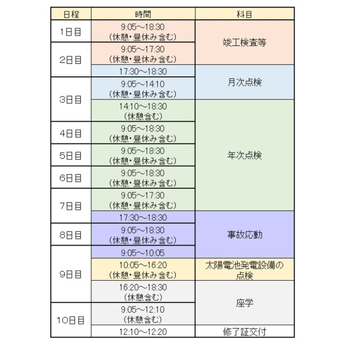 | 太陽電池発電設備の点検 | 一 太陽電池モジュール及び支持物の点検 二 使用前自己確認の方法 |